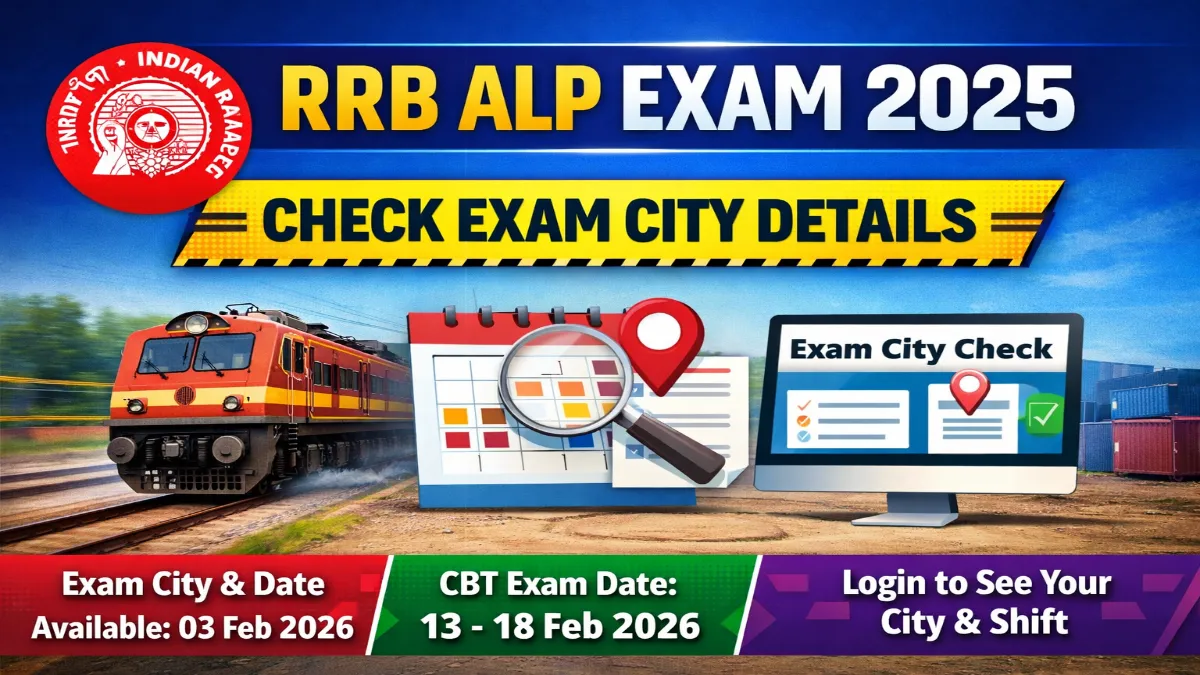 RRB ALP Recruitment 2025: Railway Recruitment Board (RRB) Assistant Loco Pilot (ALP) Recruitment 2025 includes 9970 Assistant Loco Pilot Posts under the latest recruitment notification. The recruitment process is being conducted through RRB under Advertisement No. CEN 01/2025. Candidates who have applied for the ALP recruitment can now check their Exam City, Exam Date & Shift Details. The Computer Based Test (CBT) will be conducted from 13 February 2026 to 18 February 2026. The exam city information has been released on 03 February 2026 through the official RRB portals.