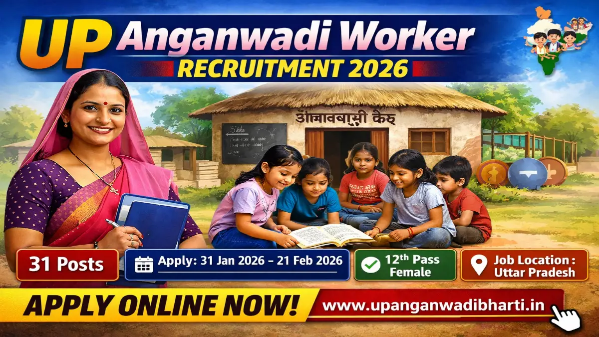 UP Anganwadi Worker Recruitment 2026: Uttar Pradesh Anganwadi Recruitment 2026 includes 31 Anganwadi Worker Posts under the latest recruitment notification. The recruitment notification has been officially released by Uttar Pradesh Anganwadi Department. Eligible female candidates who have passed 12th Class from a recognized board can apply online through the official website. The online application process will start from 31 January 2026 and the last date to submit the application form is 21 February 2026 at upanganwadibharti.in.